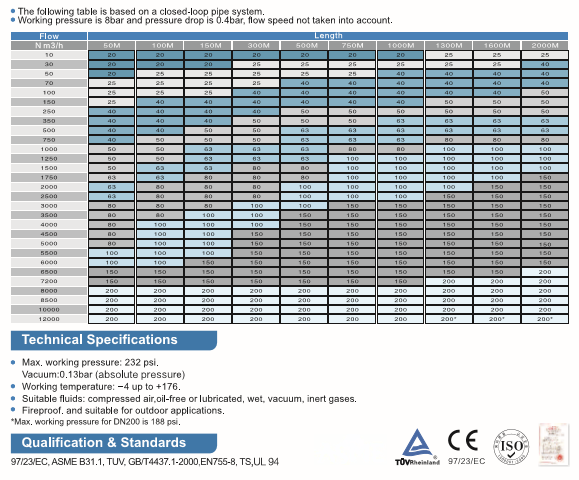 100mm (4"), 150mm (6"), 200mm (8"), 20mm (3/4"), 25mm (1"), 40mm (1-1/2"), 50mm (2"), 63mm (2-1/2"), 80mm (3")